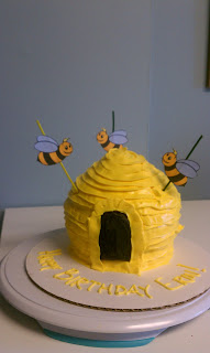 So this looked a little better before I tried to put an extra layer of frosting on it. But I made this for Erin's birthday using the giant cupcake pan.